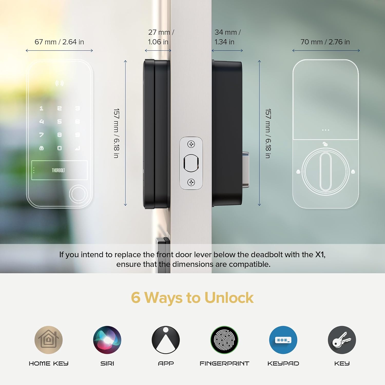 I recently upgraded from another smart lock to the X1 and I am thrilled. Our previous lock was slow, unreliable and often failed to unlock when needed.The X1 is everything I was looking for – fast using thread support, tight Apple Home integration and Home Key support, multiple unlock option including fingerprint and passcode, and a sleek professional look.I’m surprised the quality available at this price – you won’t be disappointed.