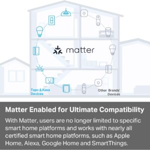 【Matter: All-Round Compatibility】With Matter, users are no longer tied to specific platforms and works with all certified smart home platforms, such as Apple Home, Amazon Alexa, Google Home and Samsung SmartThings. You can control all your smart home devices from a single app, reducing the need for multiple apps for different devices.