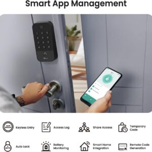 Smart App Control with Real-Time Monitoring: Control your home security wifi door lock from anywhere via Treatlife App. Remotely lock or unlock your front door lock, access detailed logs, and set up notifications to track family members as they return home. Get instant APP alerts for unusual activities, like multiple failed passcode attempts or low battery warnings, offering comprehensive security for your family. (Note: SMS or phone call alerts may incur additional charges.)