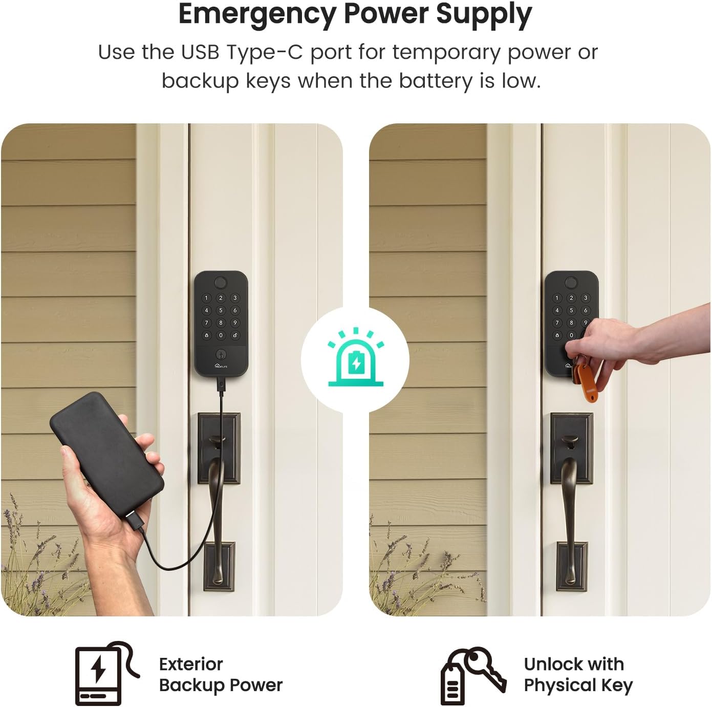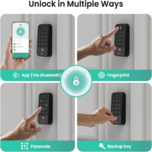 Auto-Lock and Reliable Emergency Features: Never worry about forgetting to lock your door. The auto-lock feature secures your keyless door lock automatically locks after a preset time, while 10 failed PIN attempts trigger a 3-minute lockout for enhanced protection. Low battery alerts at 20% capacity ensure up to 80 additional uses, and the USB Type-C emergency port provides temporary charging access when needed. Backed up with 18-month warranty and reliable support