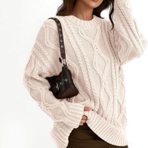 I seriously love this sweater! It’s definitely the Amazon version of the cable knit sweater, but it looks great, nice quality, and perfectly oversized! I am usually a M but sized up to L and it’s the perfect fit! Not too thick so it’s easy to layer as well! 10/10!!!
