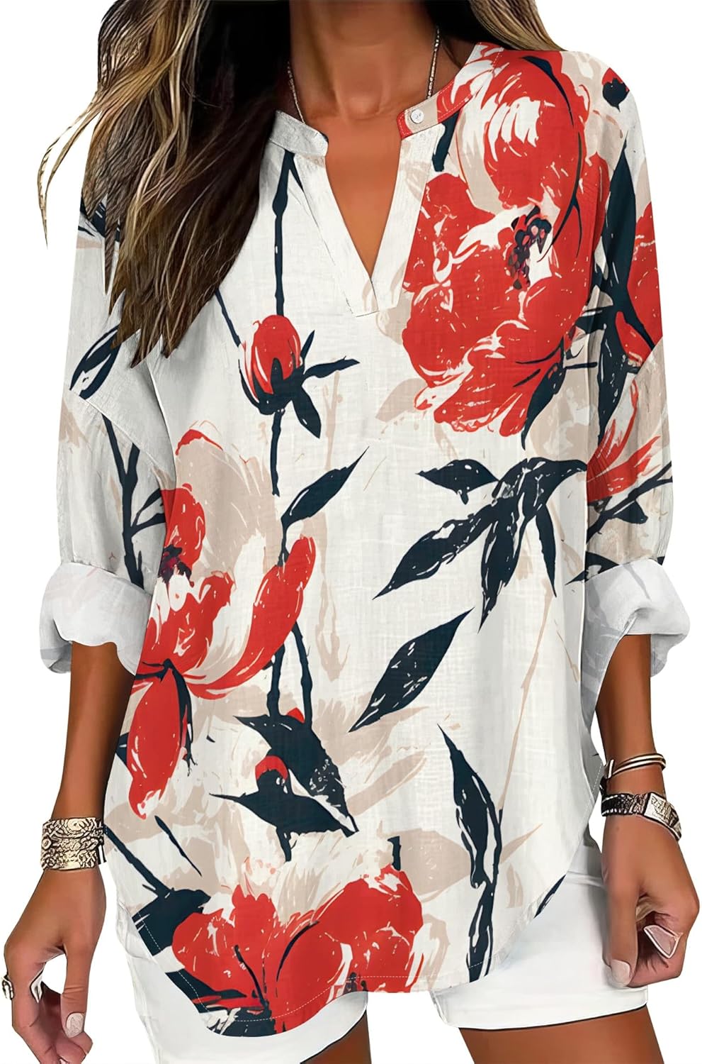 2 reviews for Womens V-Neck Long Length Sleeve Vintage Floral Print Boho Tops Casual Summer Holiday Blouse Beach Vacation Clothes