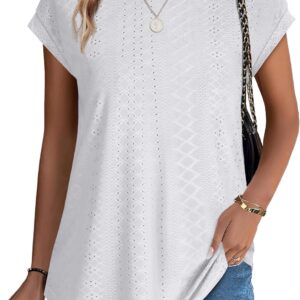 XIEERDUO Womens Tops Short Sleeve Shirts Blouses for Women Dressy Casual Cap Sleeve Tops with Curved Hem