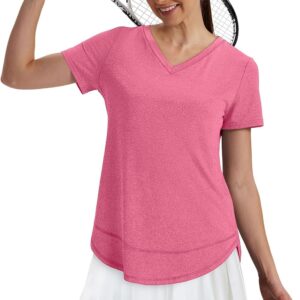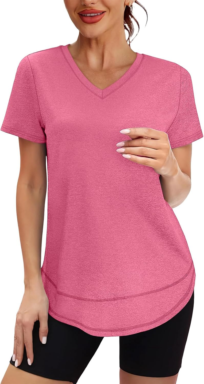 XIEERDUO Womens Workout Tops Short Sleeve Shirts Sun Protection UPF 50+ Quick Dry Outfits for Hiking Running V Neck S-3XL