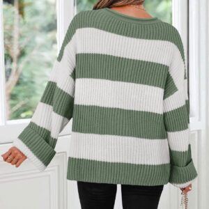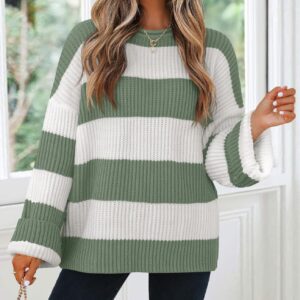Plus Size Fall Fashion Casual Striped Pullover Sweater Tops